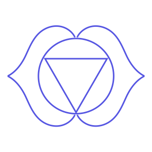 Vishuddha (literally, “to purify”) is located near the base of the throat. It is often depicted as a blue downward-facing triangle inside a lotus with 16 purple petals. Vishuddha is associated with the element ether, or “space” (akasha), and with speaking one’s truth.