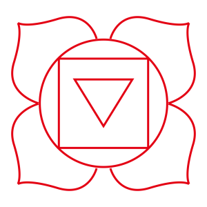 Muladhara (literally, “root support”) is located at the base of the spine. It is often depicted as a red four-petaled lotus, and it’s connected to the earth element.